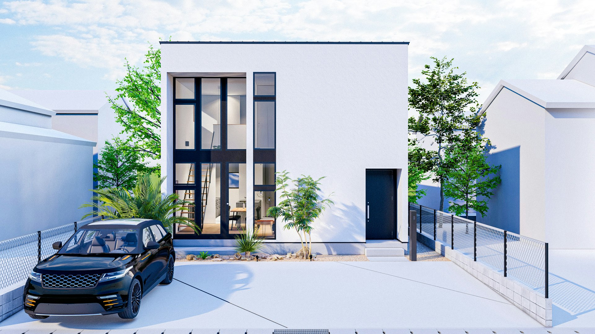シンプルで凛とした印象を放つファサード。連なるスリット窓が室内に運ぶ、柔らかな陽光が心地いいメインフロア。シームレスに繋がる動線や、ところどころに施されたアクセントが豊かな時間を予感させます。